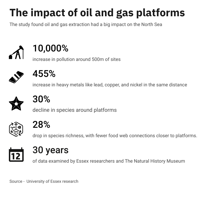 His pioneering work on North Sea platforms has shone a light on the true impact of the extraction with his research finding massive spikes in pollution.