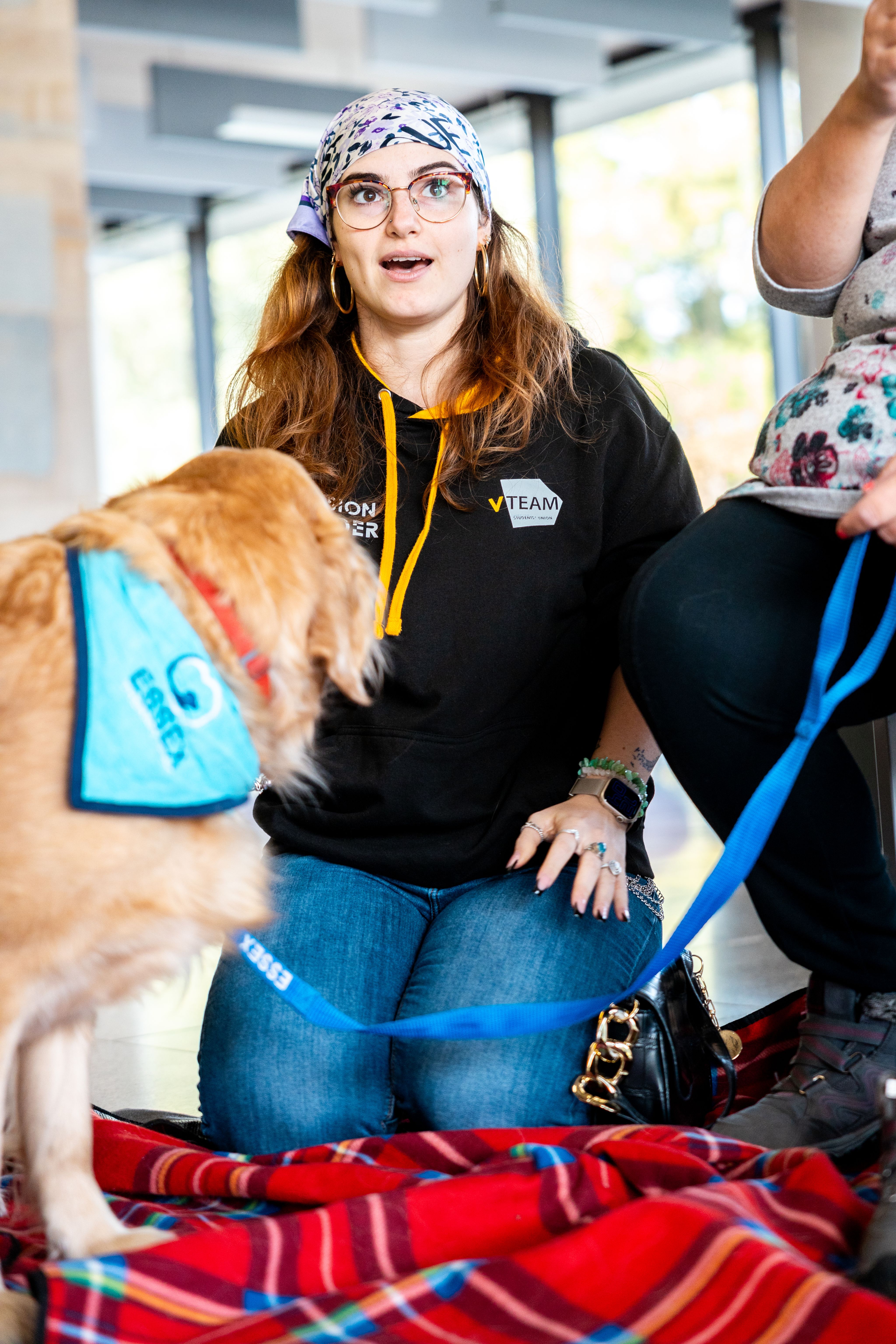 “I wanted to get involved with the VTeam because attending the dog therapy sessions last year helped me become more comfortable around new people and larger crowds. I wanted to have the same impact on other students and, in a way, help them become the best version of themselves without feeling awkward or uncomfortable in more social and crowded environments.”