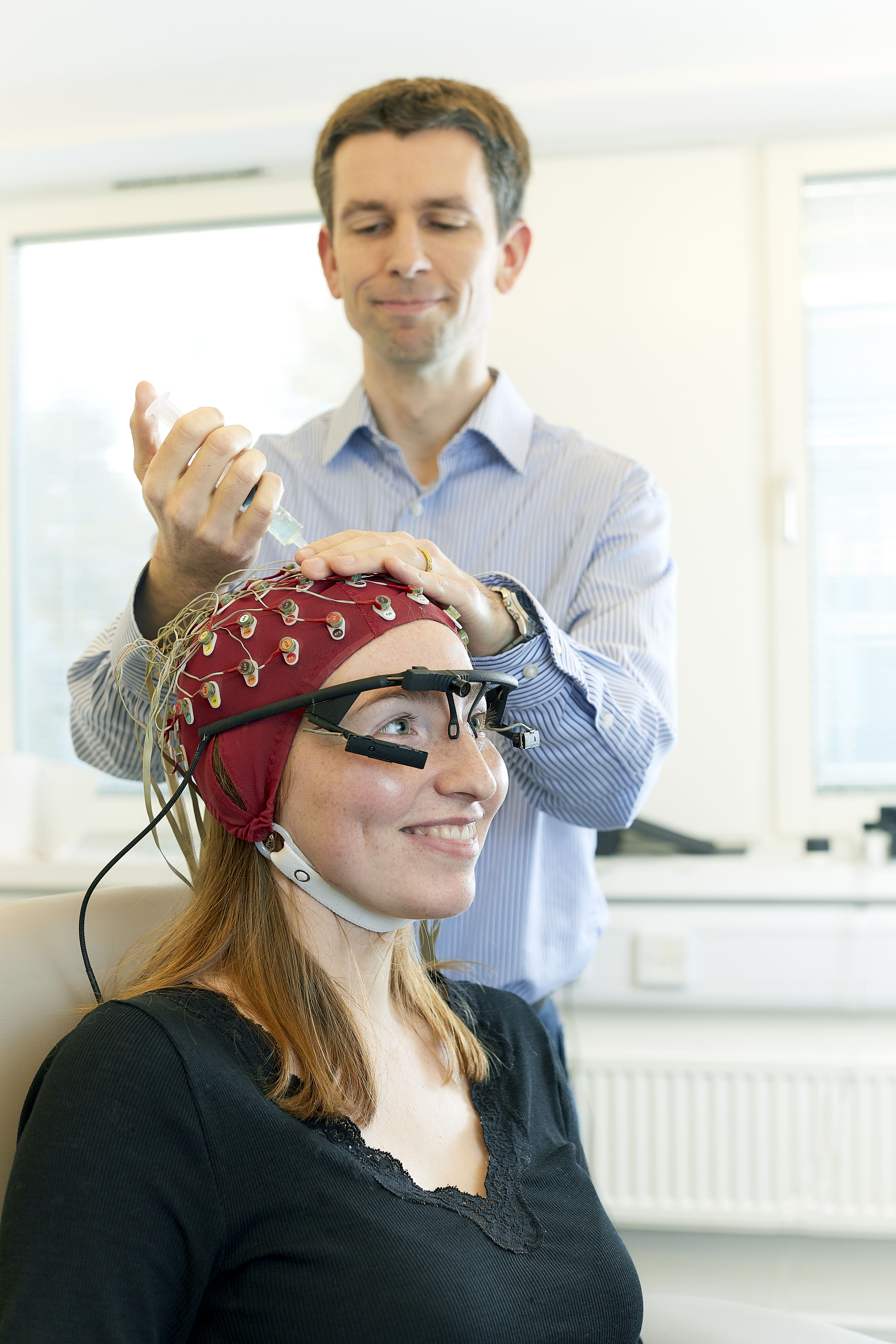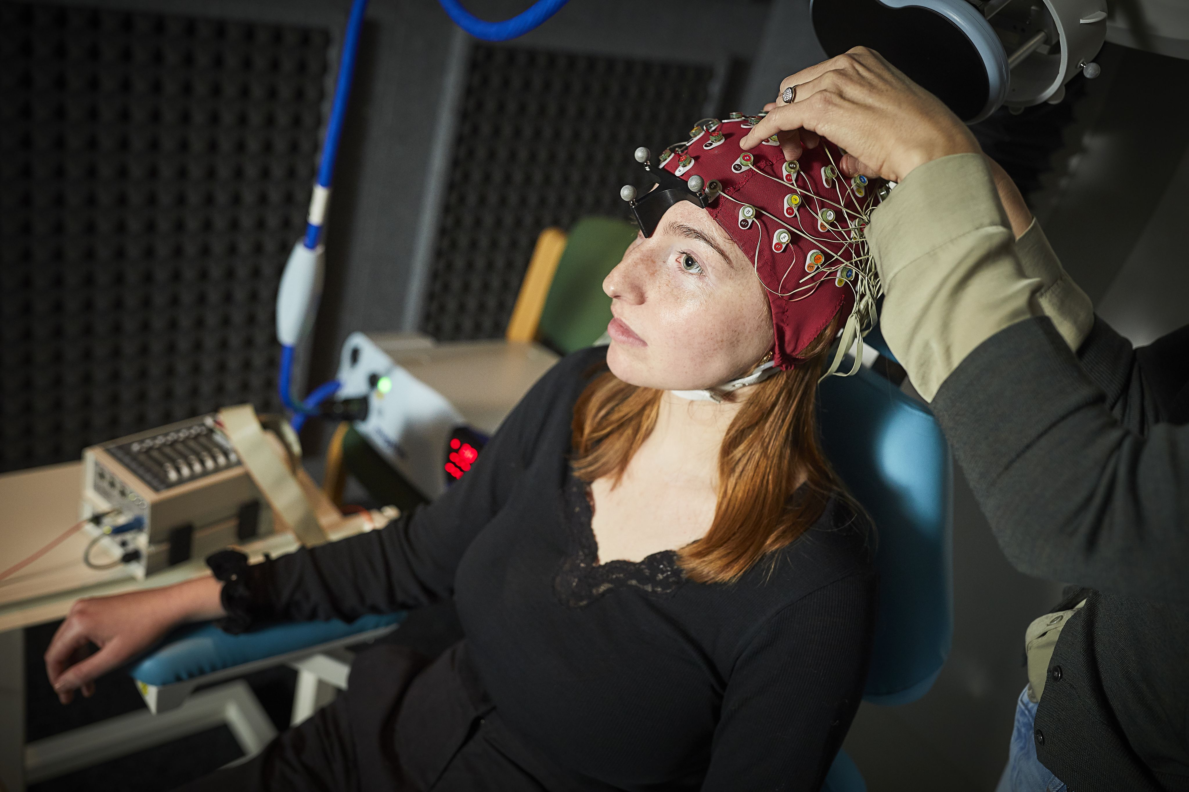 Participants wore a cap covered with electrodes that recorded brain electrical activity, known as an EEG.
